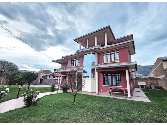 Se ofrece en alquiler una imponente propiedad independiente con una extensión de terreno privilegiada, ubicada sobre la Av. Chapare (Km 5 1/2), en las inmediaciones de la parada de la línea H. Esta casa destaca por sus amplios jardines y una distribución en tres niveles que brinda independencia y comodidad para familias numerosas.